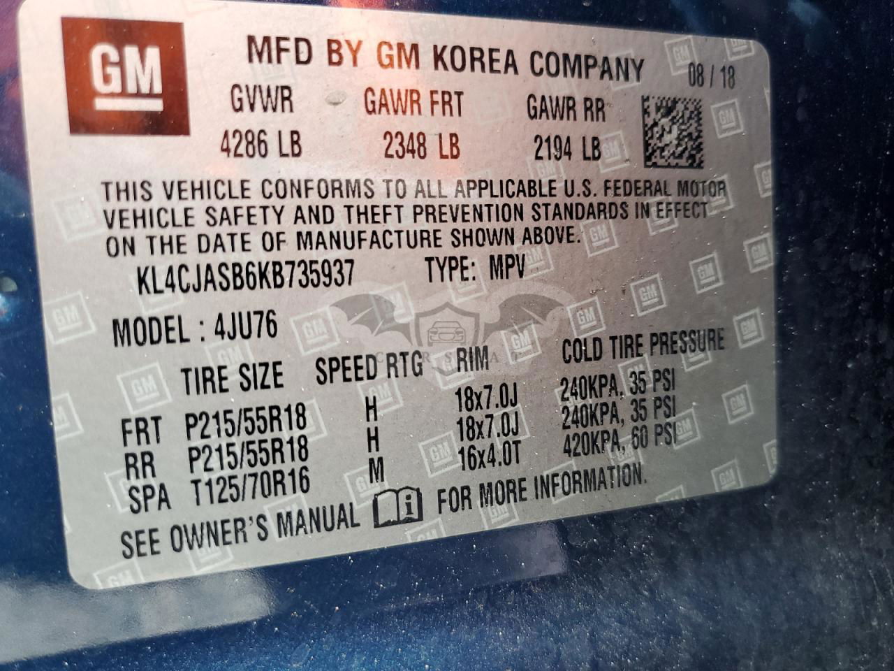 • VIN: KL4CJASB6KB735937