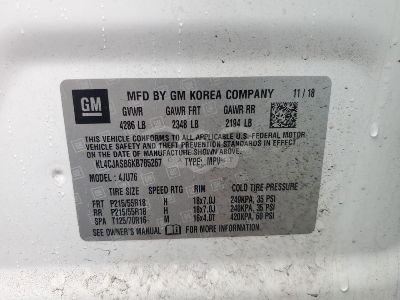 • VIN: KL4CJASB6KB785267