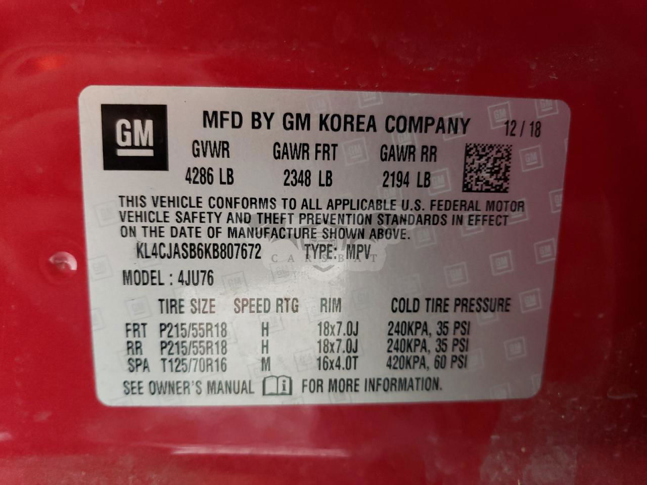 • VIN: KL4CJASB6KB807672