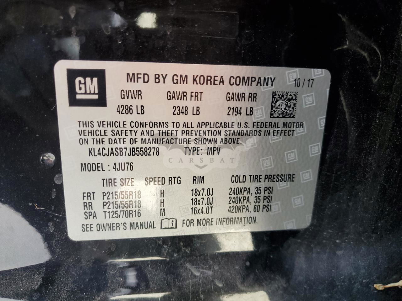 • VIN: KL4CJASB7JB558278