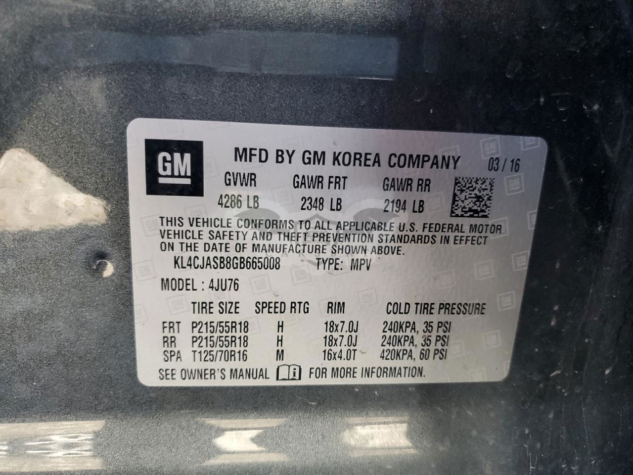• VIN: KL4CJASB8GB665008