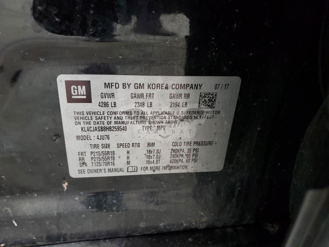 • VIN: KL4CJASB8HB259540