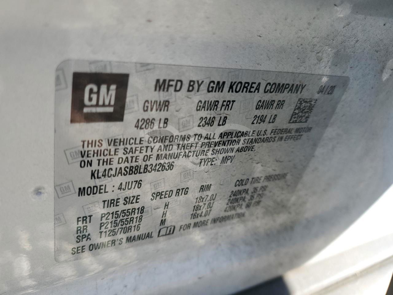 • VIN: KL4CJASB8LB342636