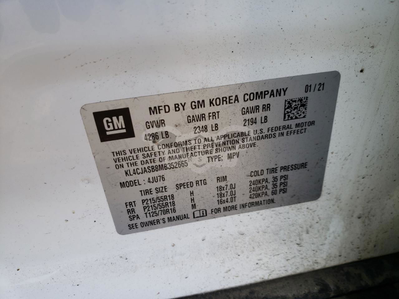 • VIN: KL4CJASB8MB352665