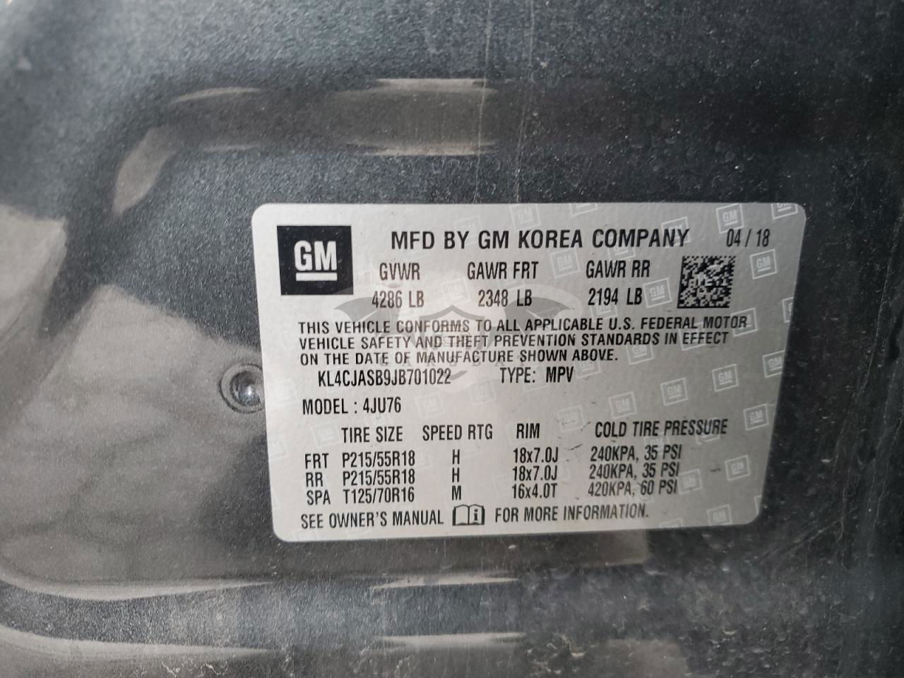 • VIN: KL4CJASB9JB701022
