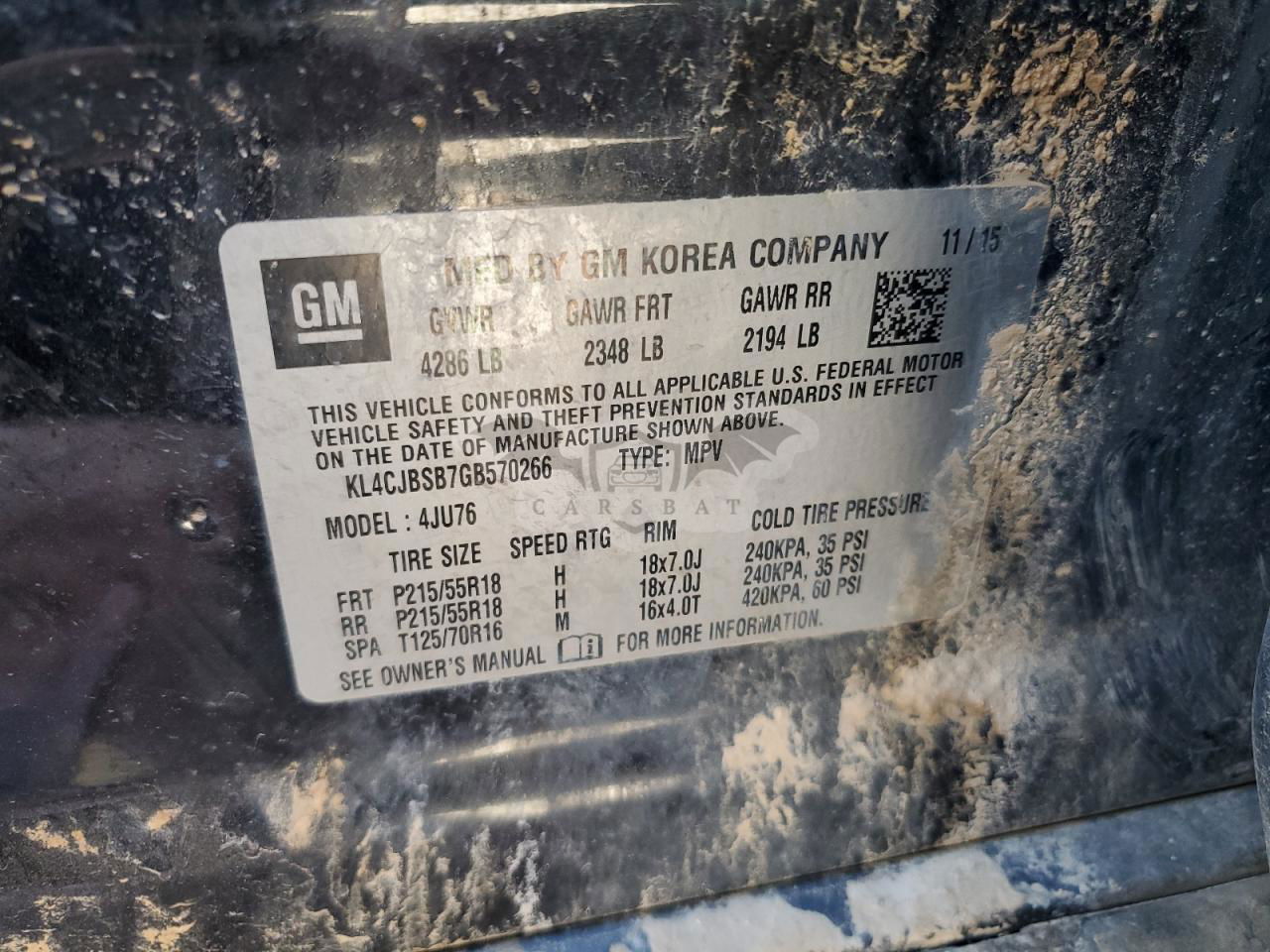 • VIN: KL4CJBSB7GB570266