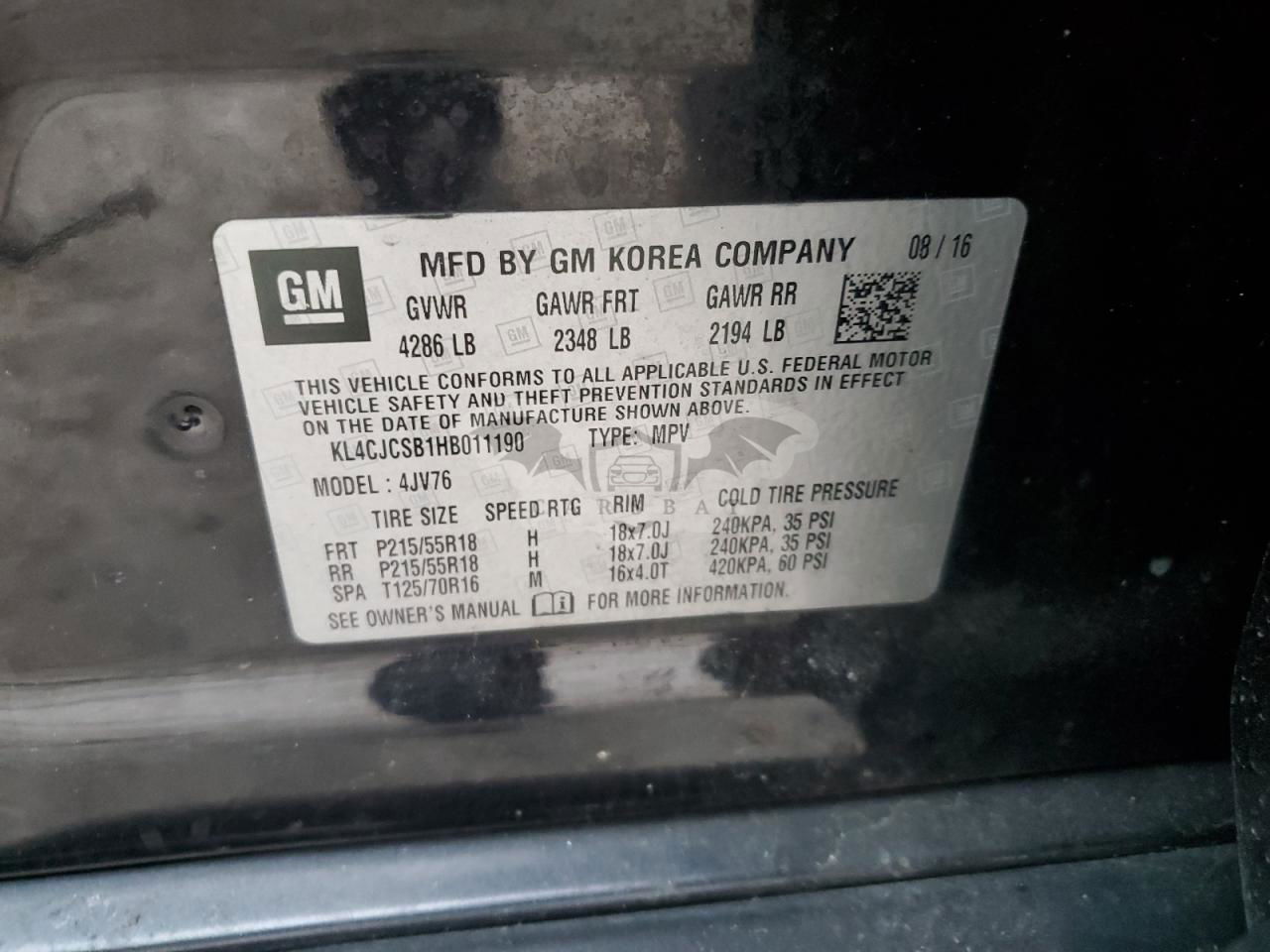 • VIN: KL4CJCSB1HB011190