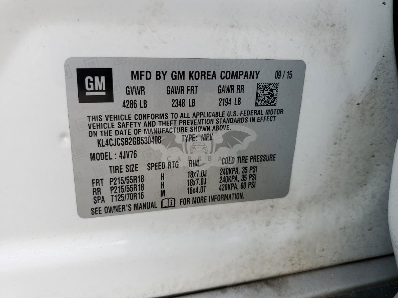 • VIN: KL4CJCSB2GB530408