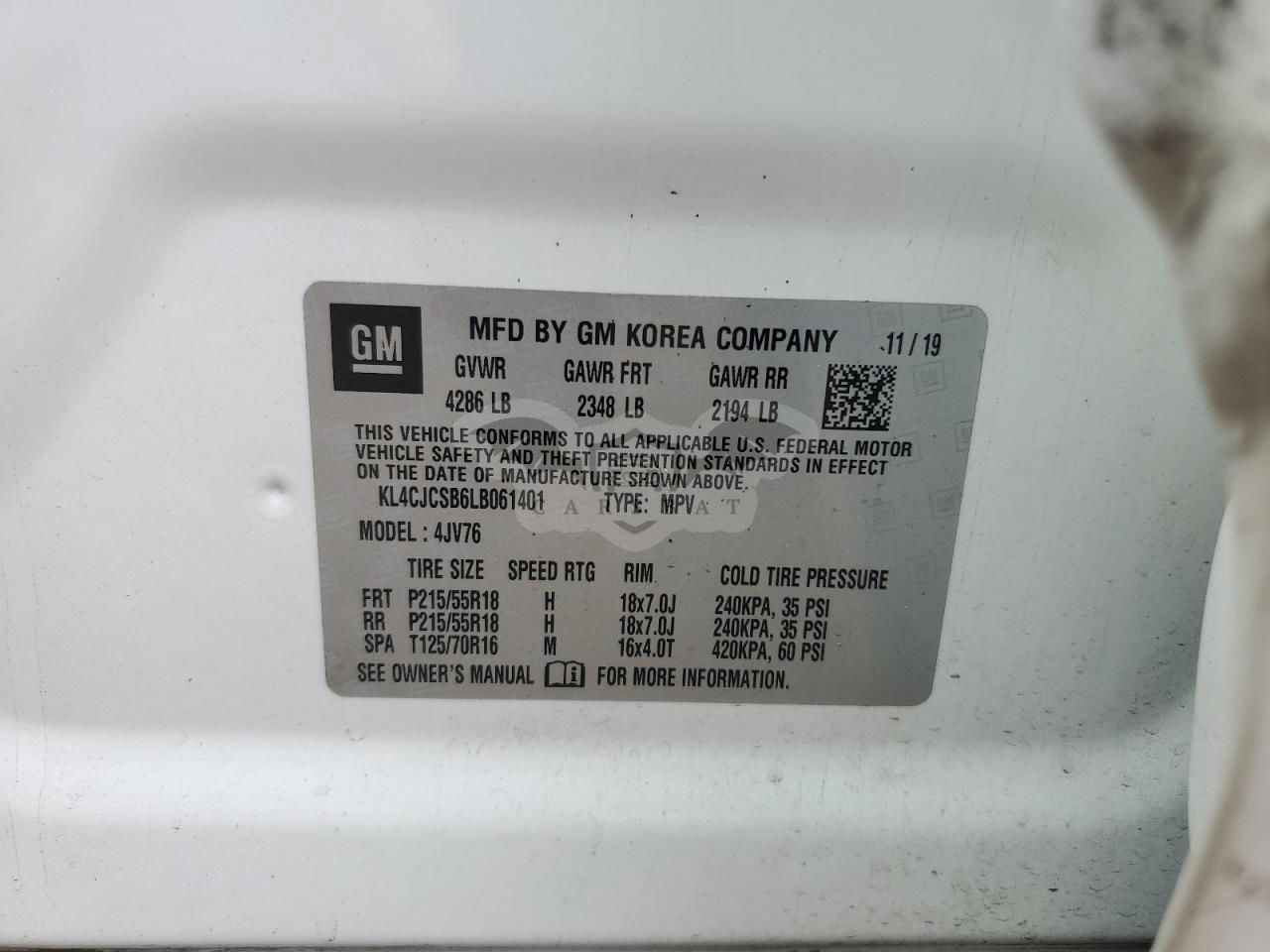 • VIN: KL4CJCSB6LB061401