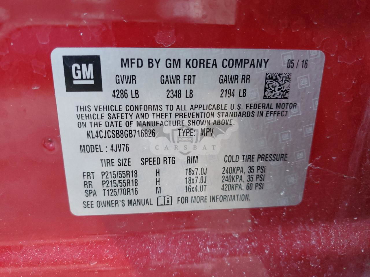 • VIN: KL4CJCSB8GB716826