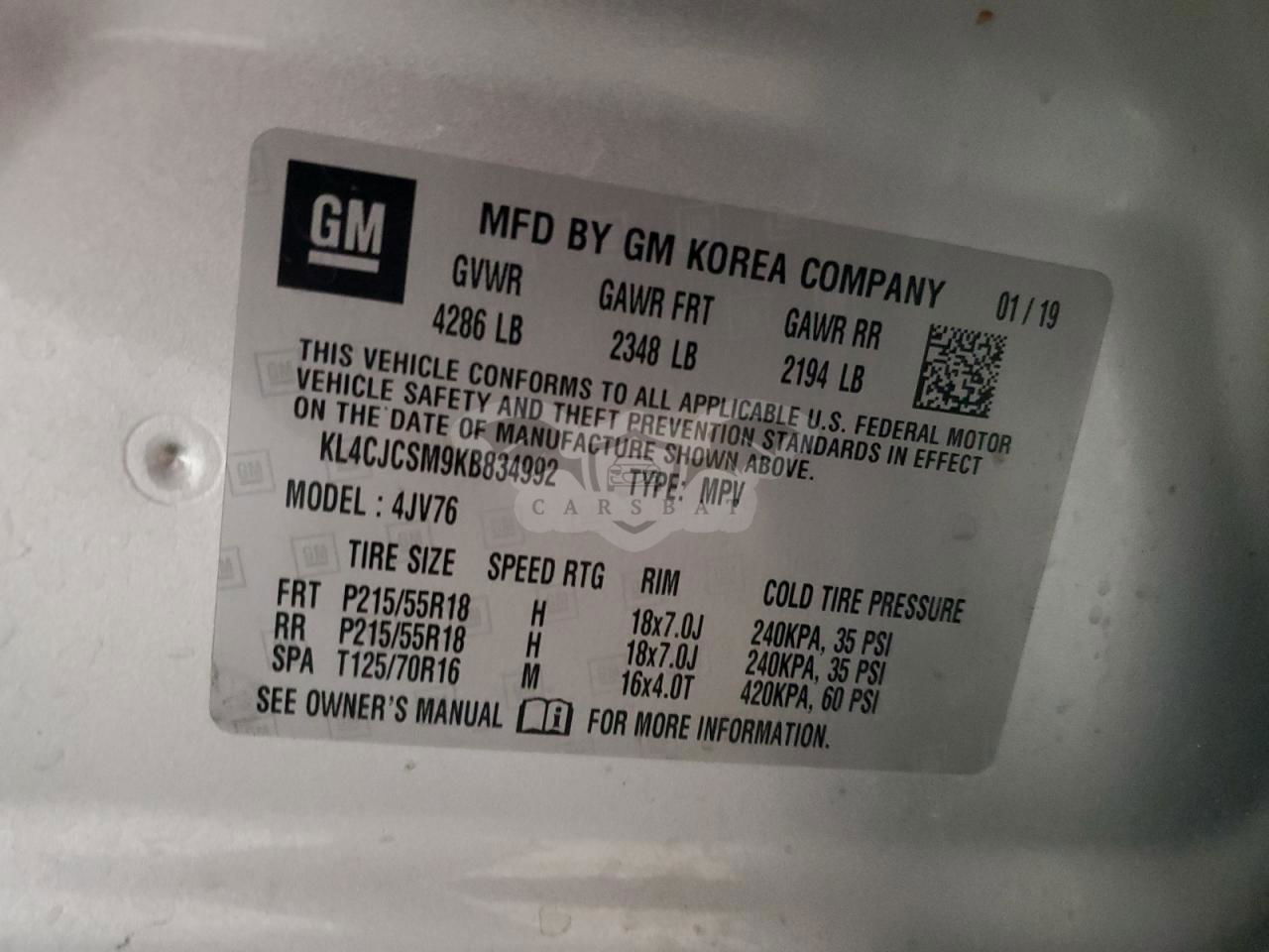 • VIN: KL4CJCSM9KB834992