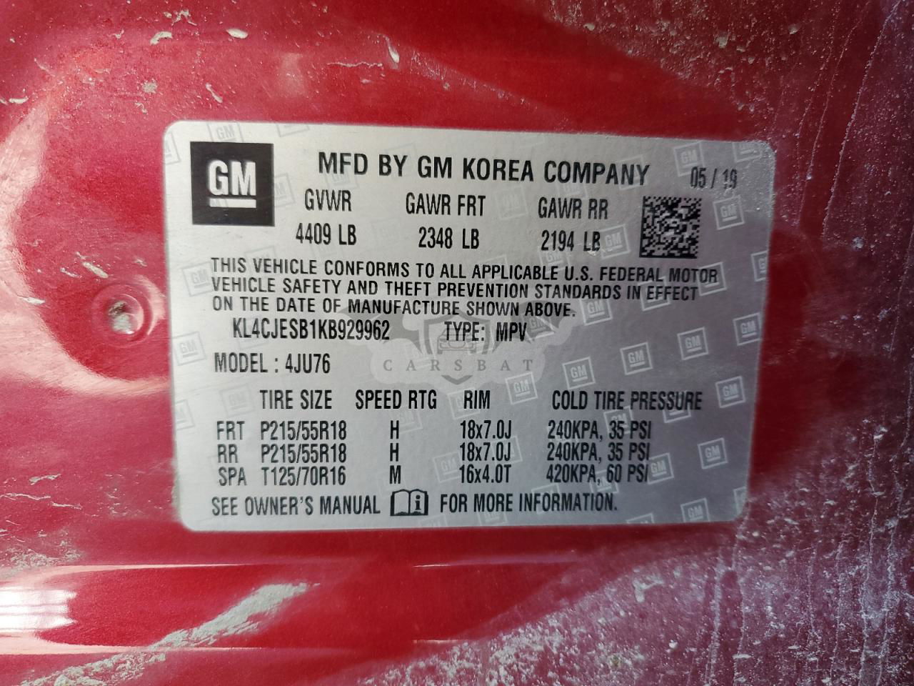 • VIN: KL4CJESB1KB929962