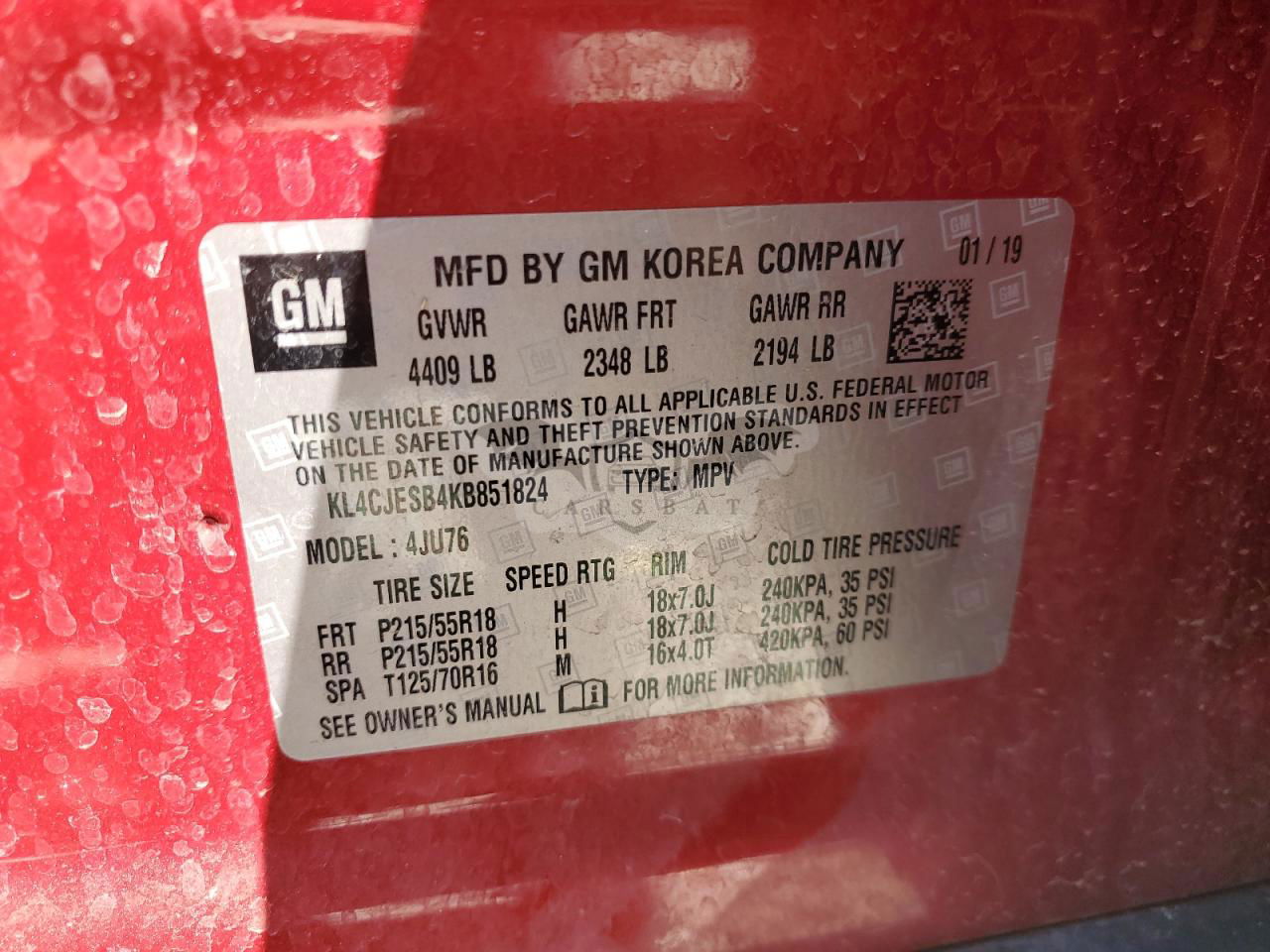 • VIN: KL4CJESB4KB851824