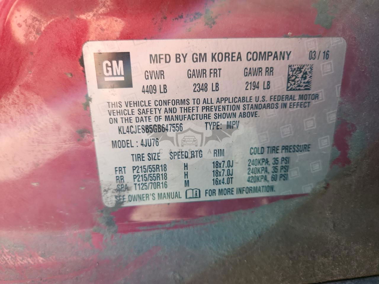 • VIN: KL4CJESB5GB647556