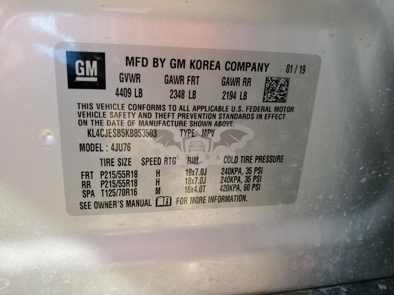• VIN: KL4CJESB5KB853503