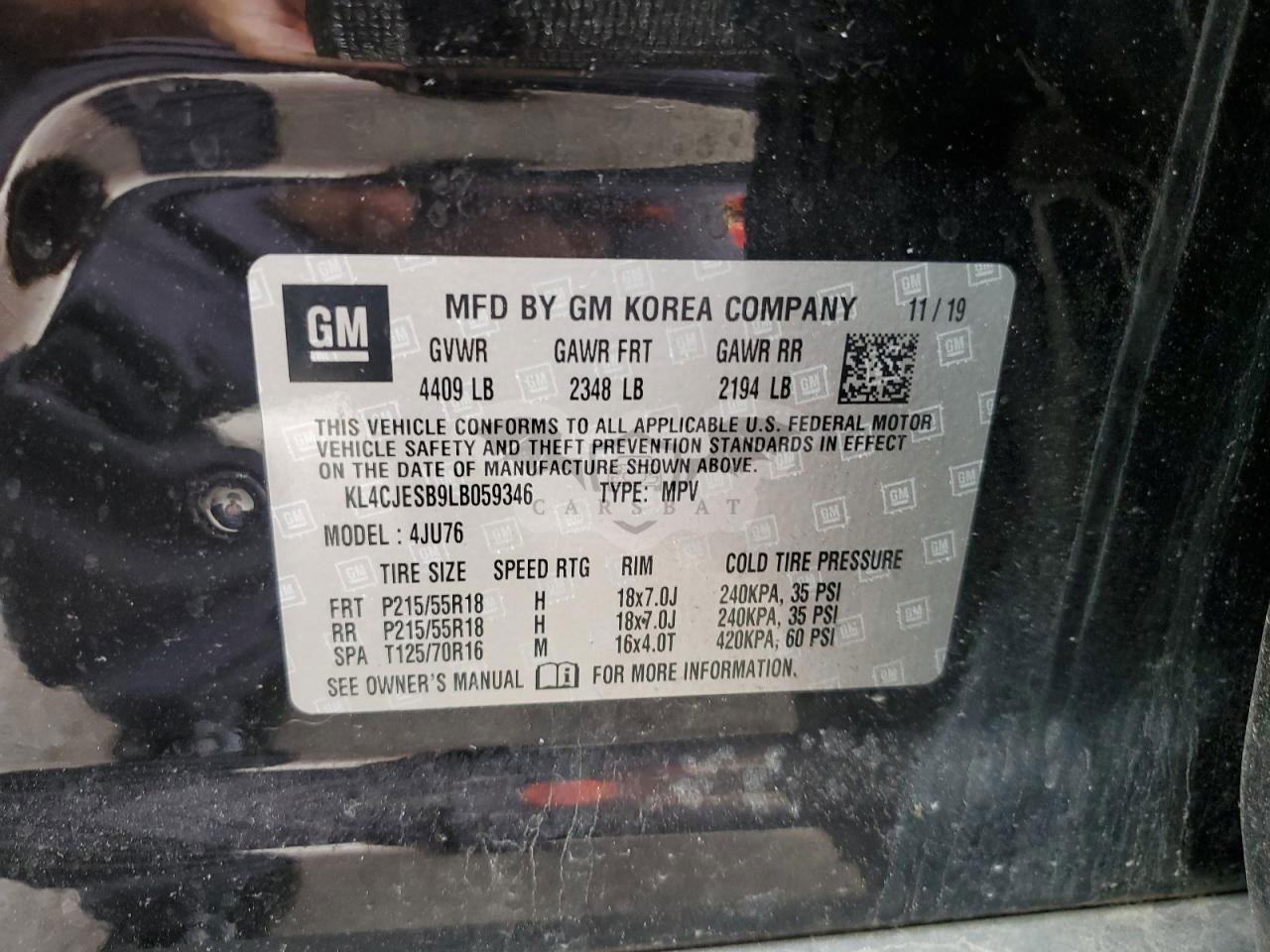 • VIN: KL4CJESB9LB059346