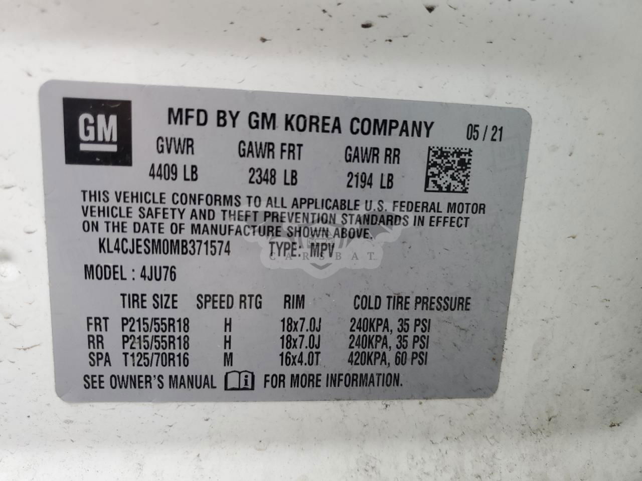 • VIN: KL4CJESM0MB371574