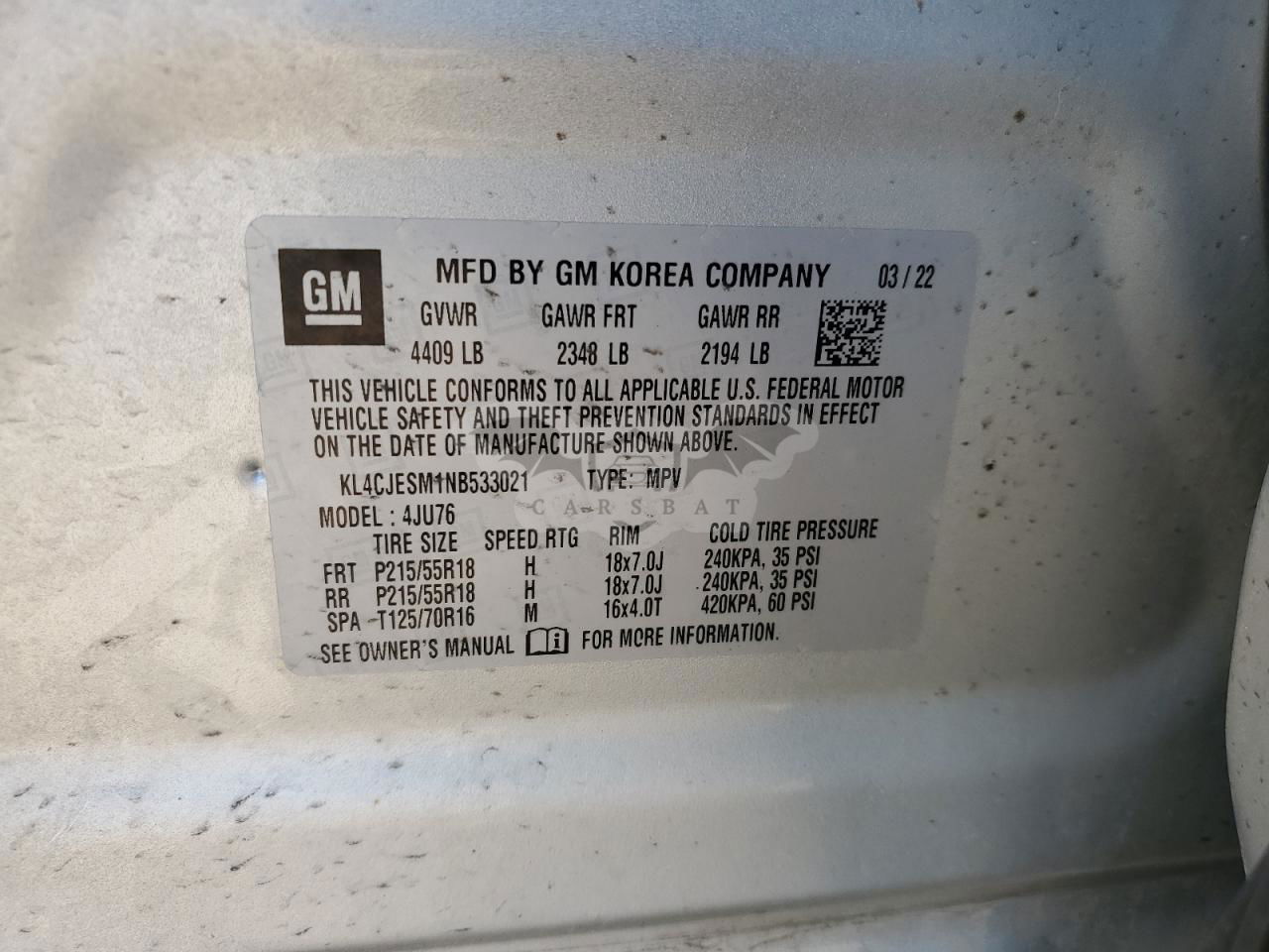 • VIN: KL4CJESM1NB533021