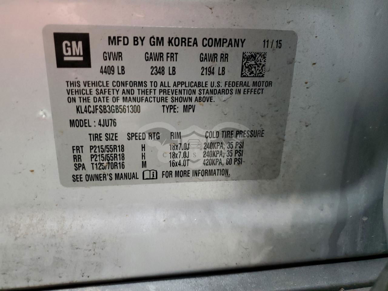 • VIN: KL4CJFSB3GB561300