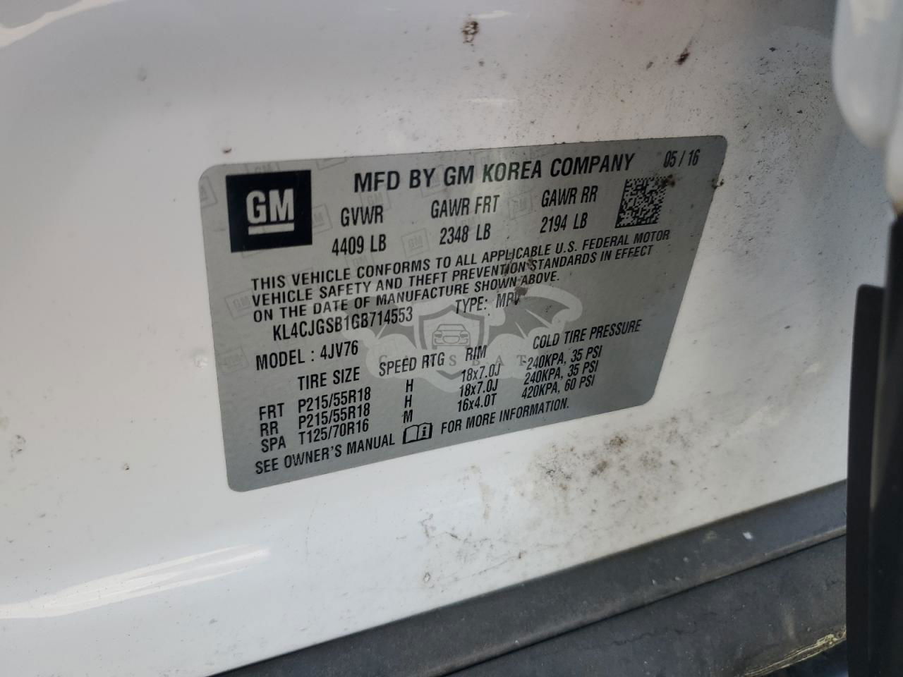 • VIN: KL4CJGSB1GB714553