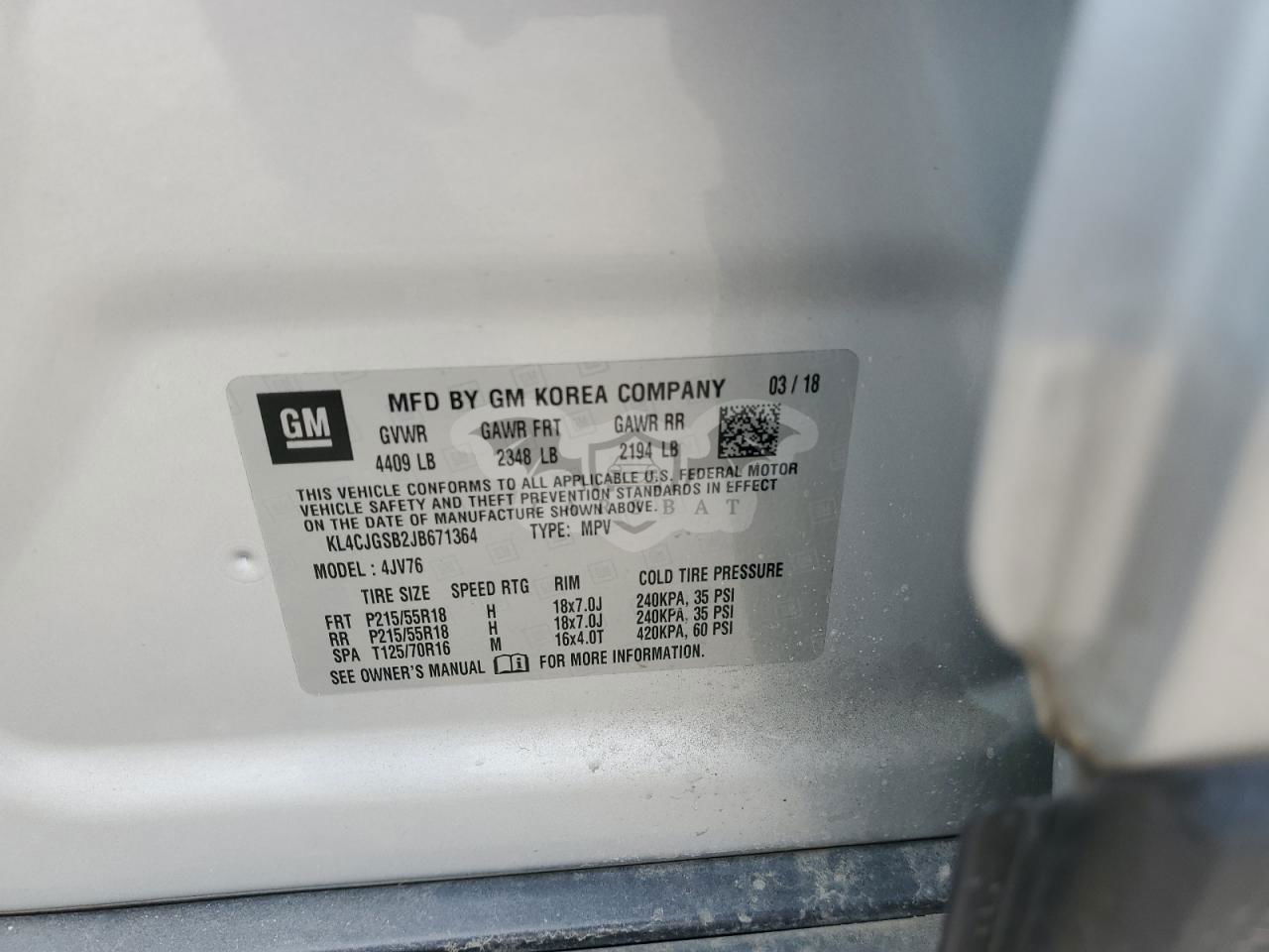 • VIN: KL4CJGSB2JB671364