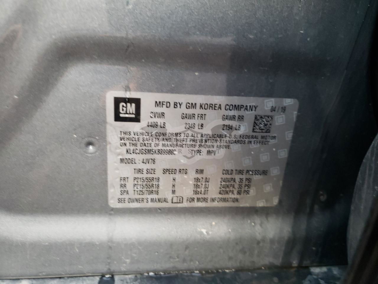 • VIN: KL4CJGSM5KB899880