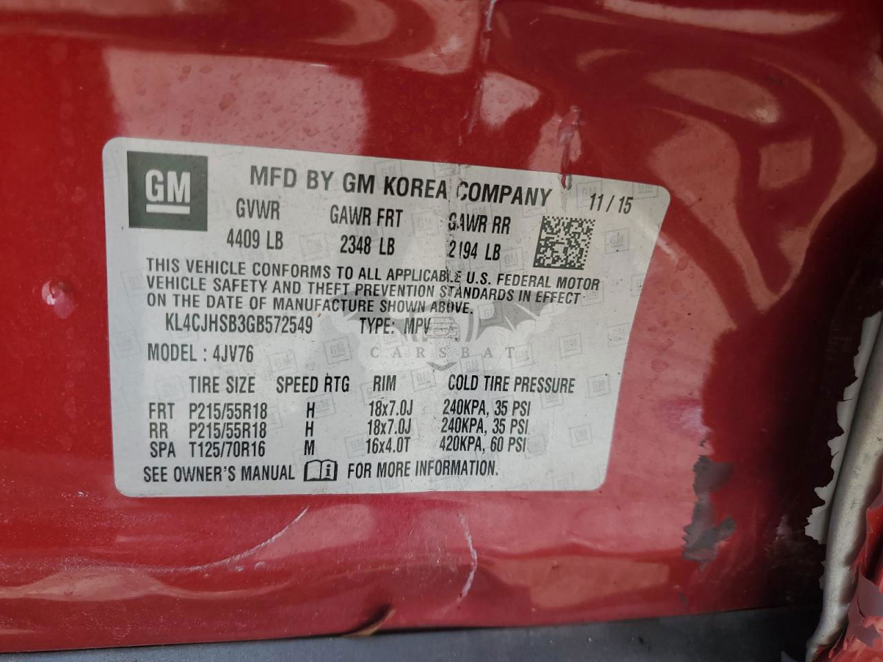 • VIN: KL4CJHSB3GB572549
