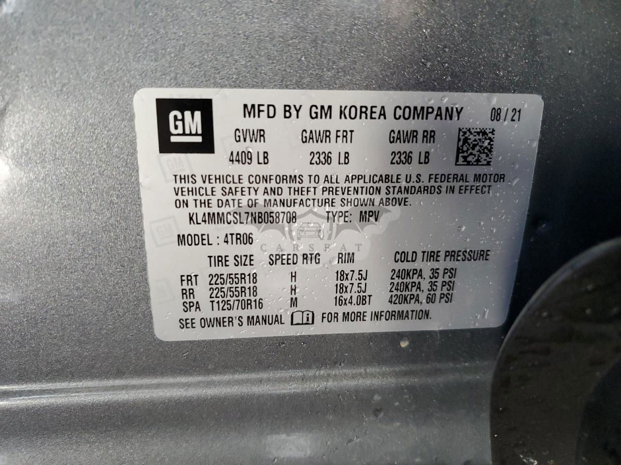 • VIN: KL4MMCSL7NB058708
