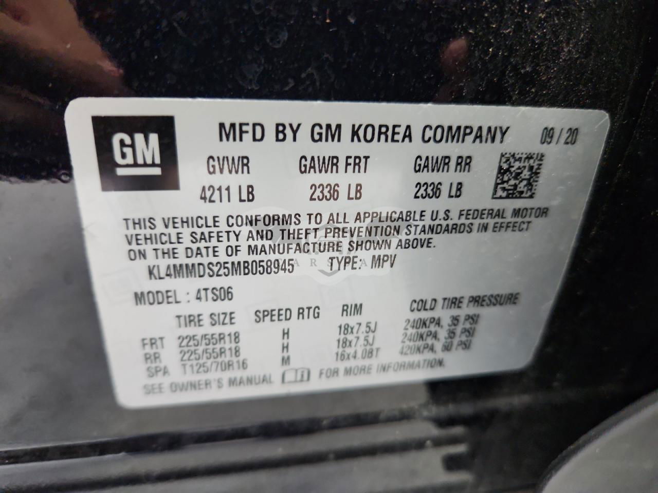 • VIN: KL4MMDS25MB058945