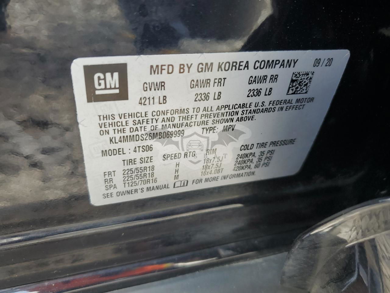 • VIN: KL4MMDS26MB069999