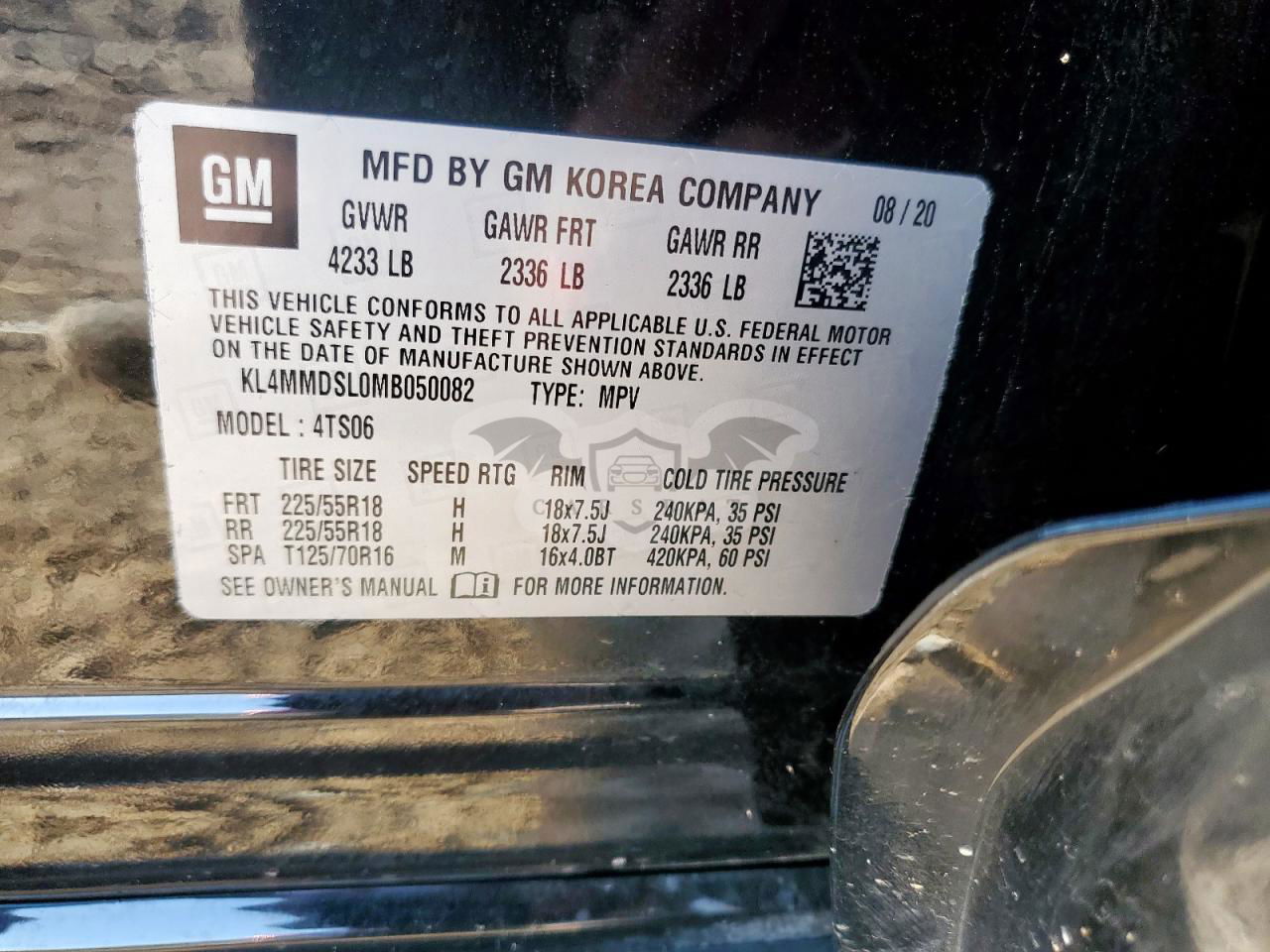 • VIN: KL4MMDSL0MB050082