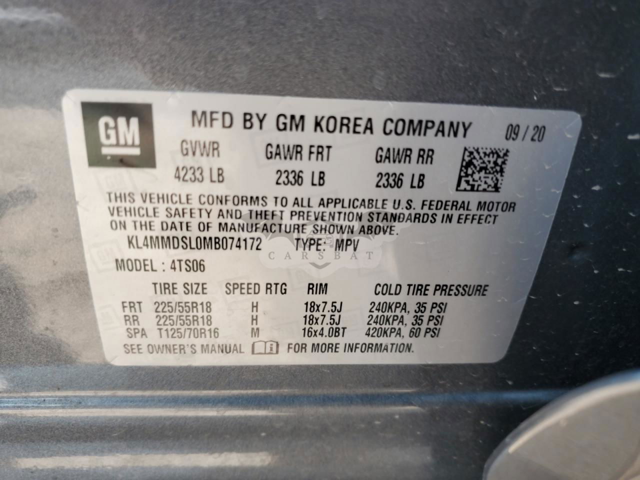 • VIN: KL4MMDSL0MB074172