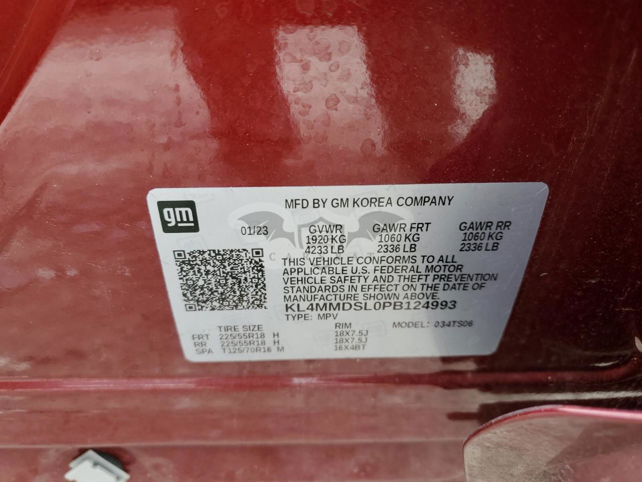 • VIN: KL4MMDSL0PB124993