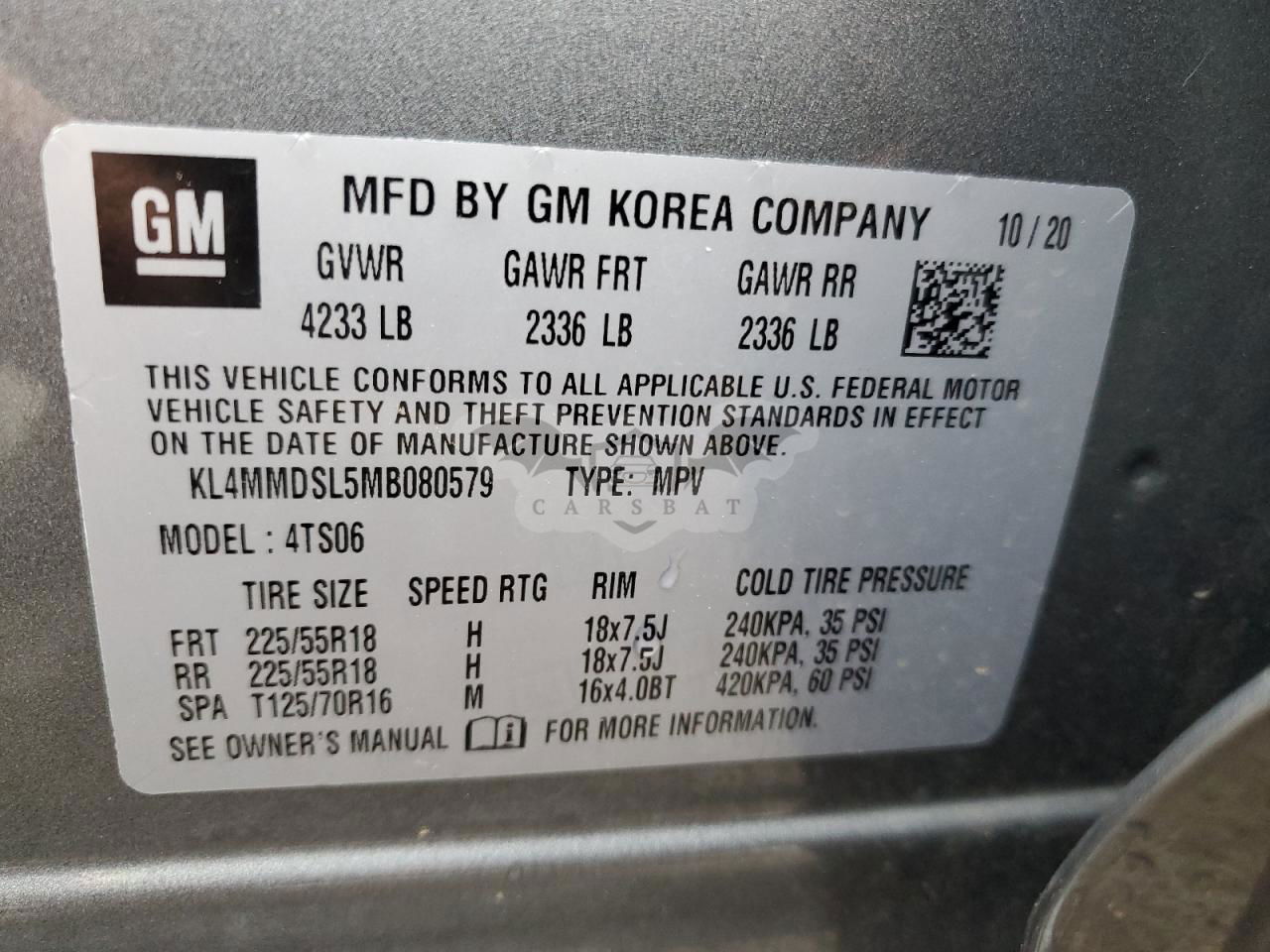 • VIN: KL4MMDSL5MB080579