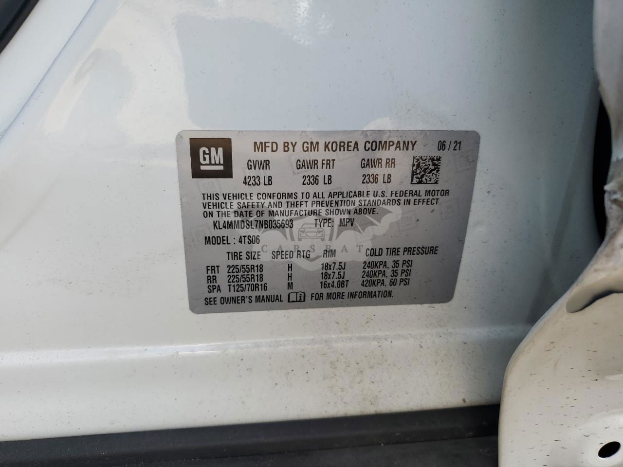 • VIN: KL4MMDSL7NB035693