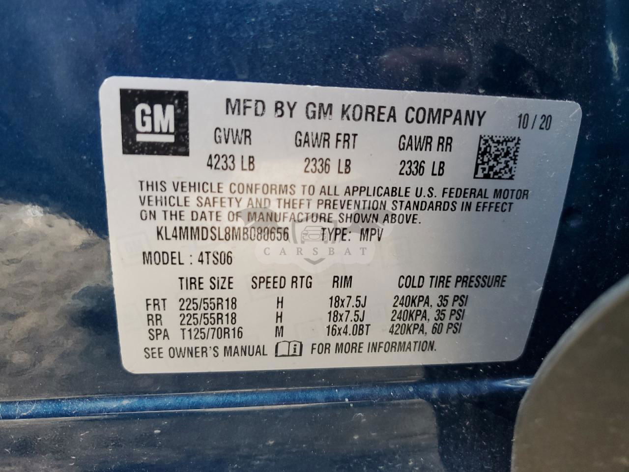 • VIN: KL4MMDSL8MB080656