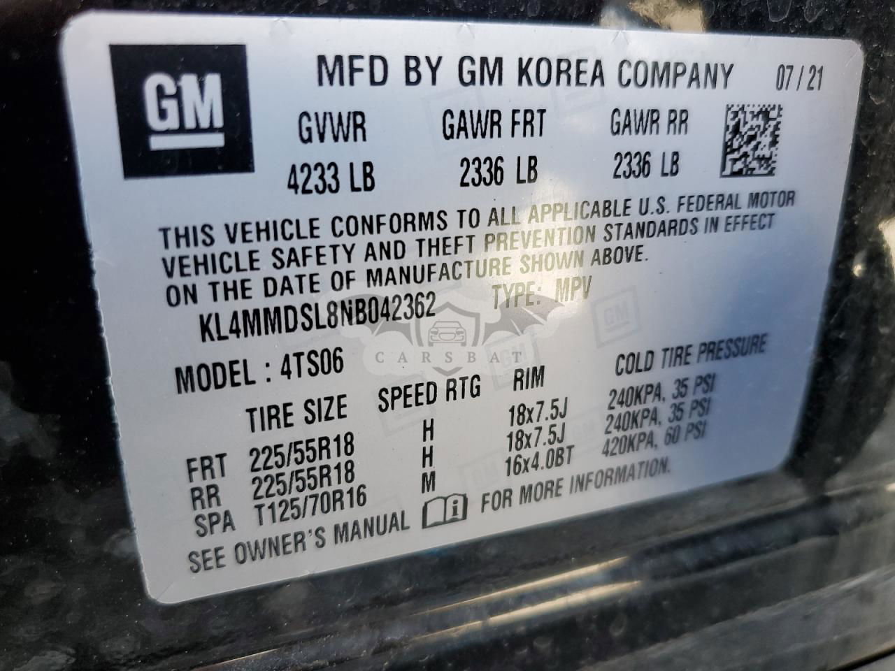 • VIN: KL4MMDSL8NB042362