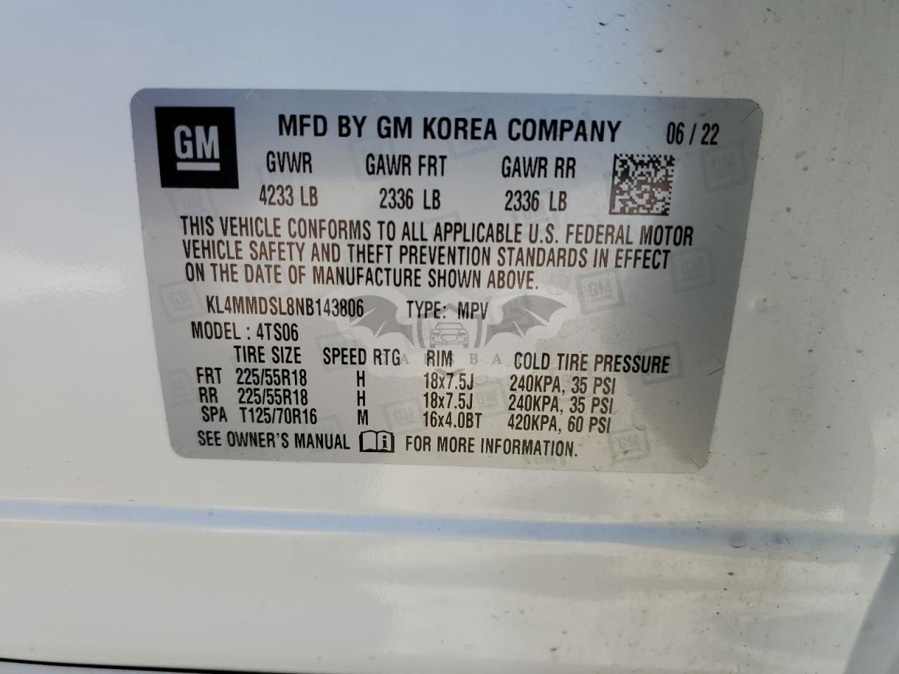 • VIN: KL4MMDSL8NB143806