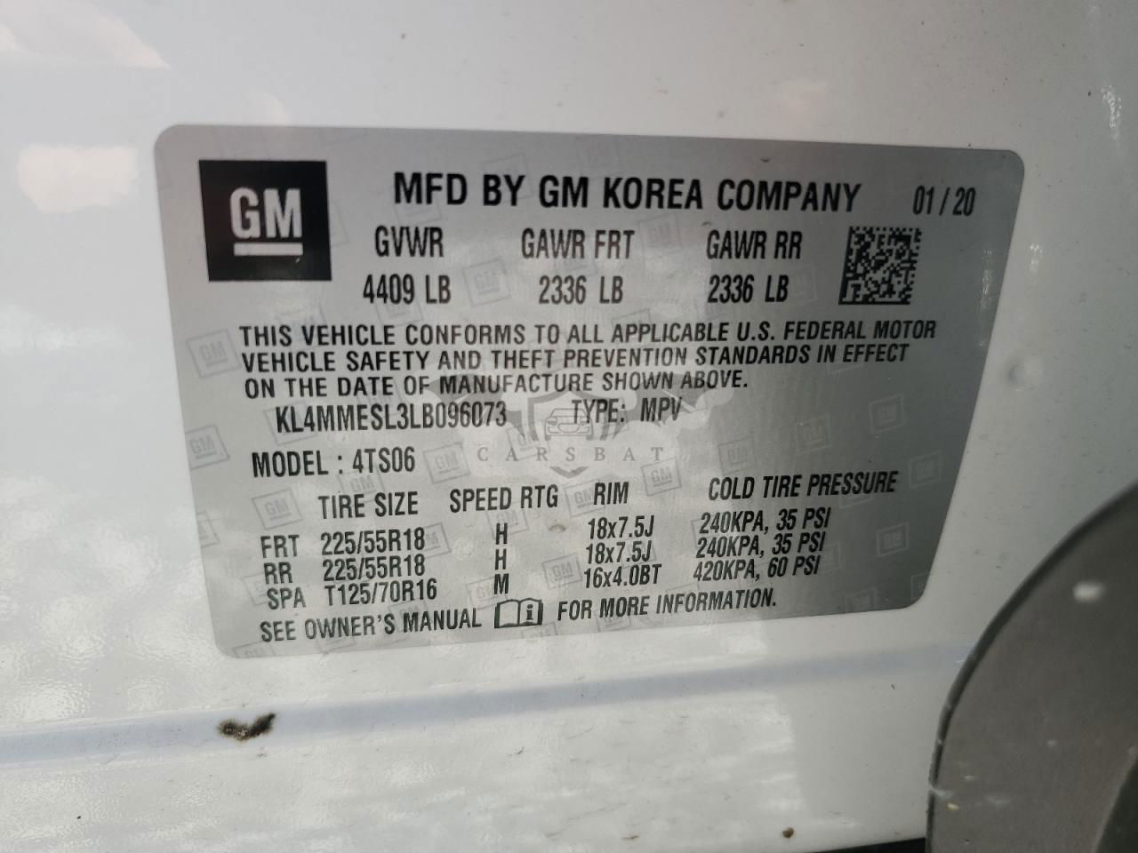 • VIN: KL4MMESL3LB096073