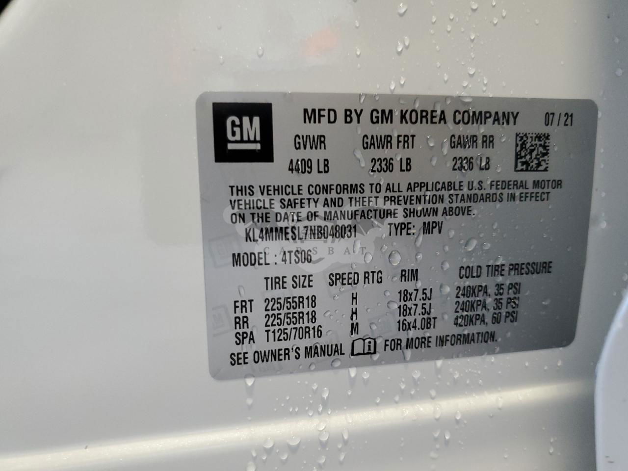 • VIN: KL4MMESL7NB048031