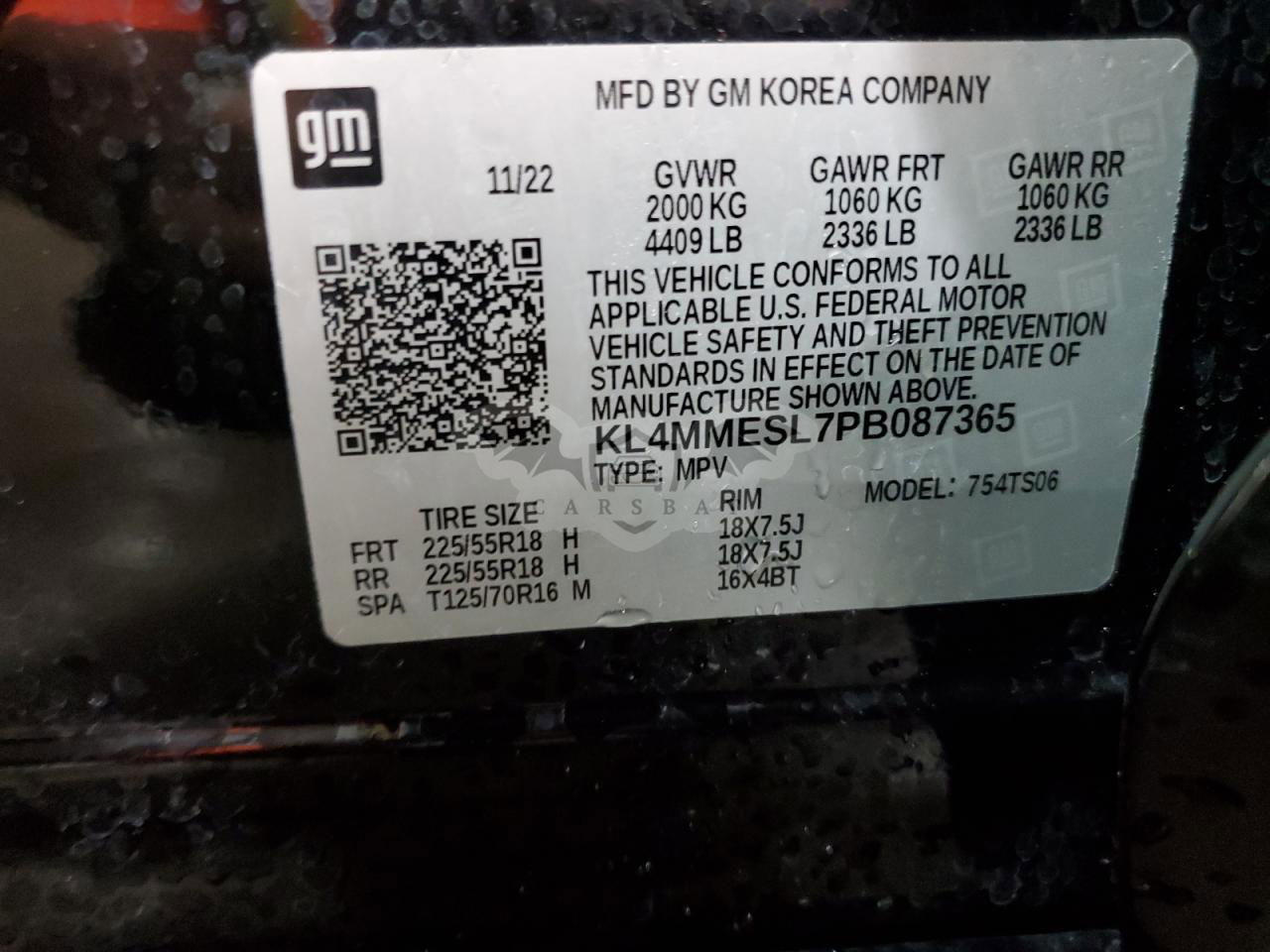 • VIN: KL4MMESL7PB087365