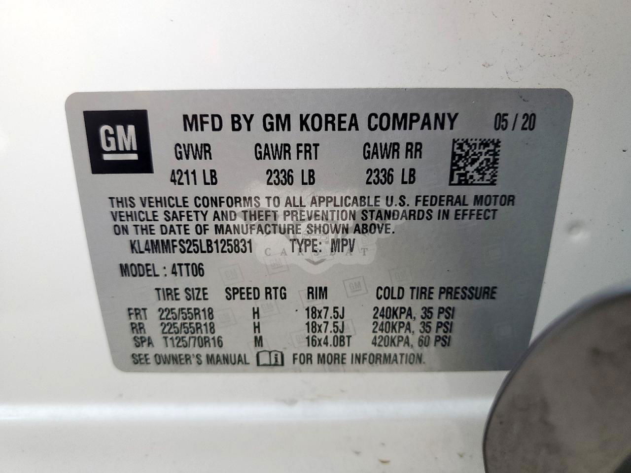 • VIN: KL4MMFS25LB125831