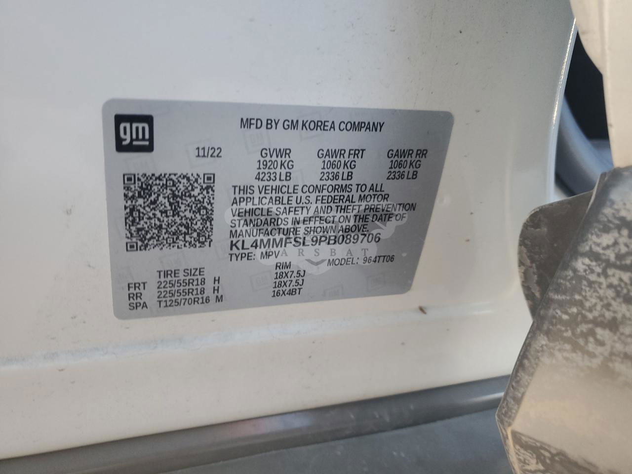• VIN: KL4MMFSL9PB089706