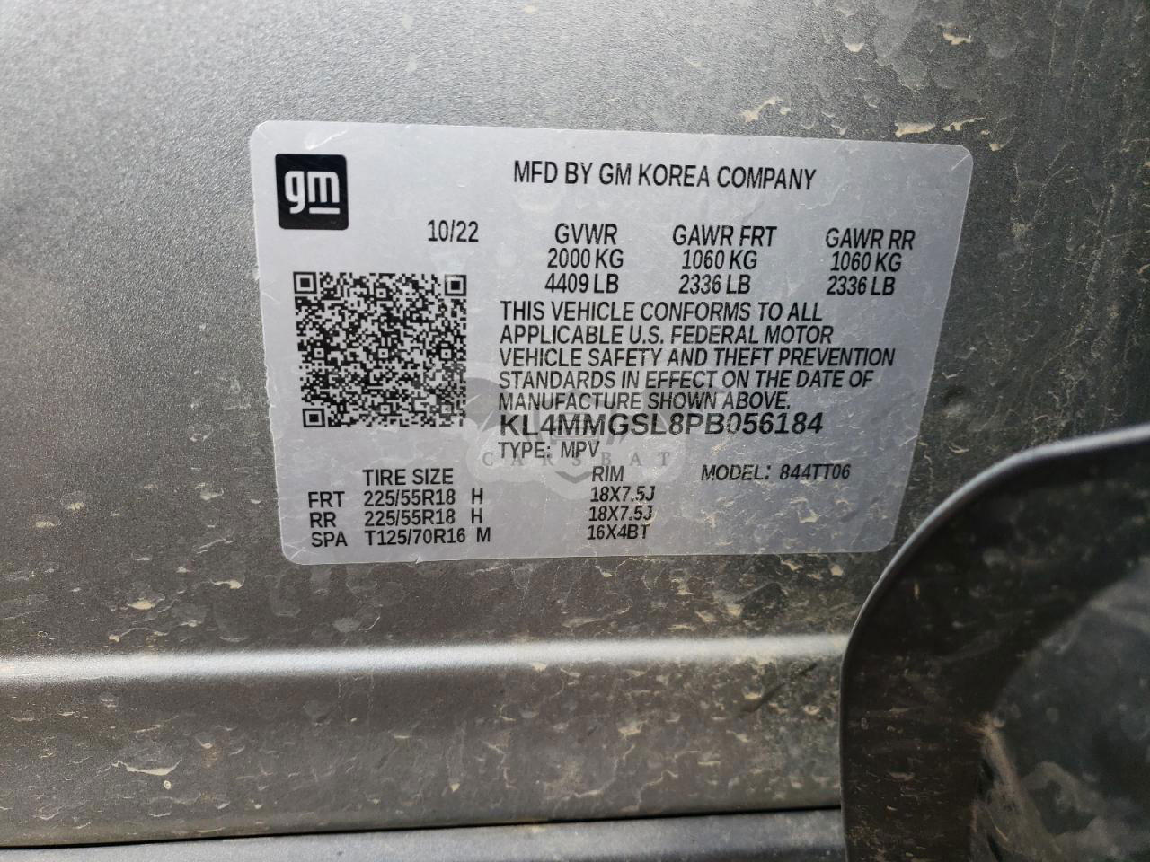 • VIN: KL4MMGSL8PB056184