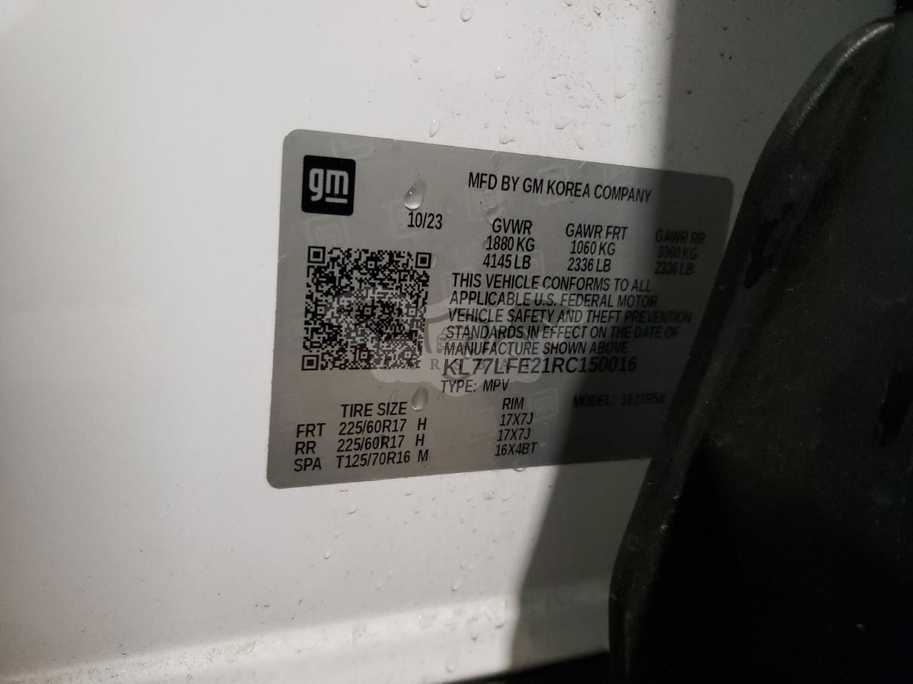 • VIN: KL77LFE21RC150016
