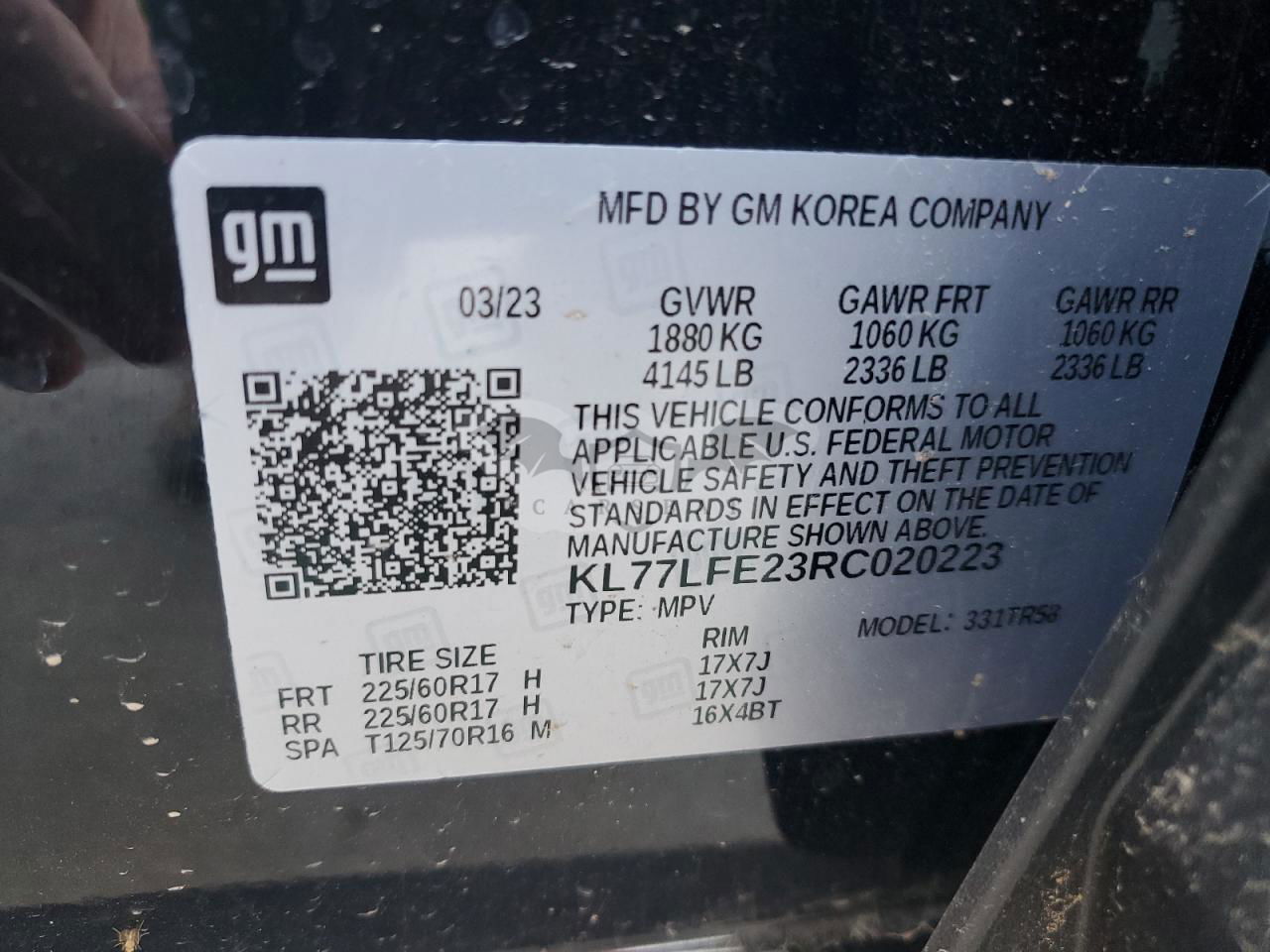 • VIN: KL77LFE23RC020223
