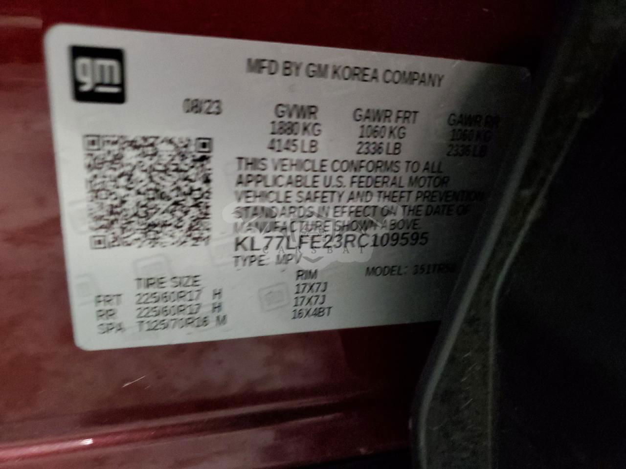 • VIN: KL77LFE23RC109595