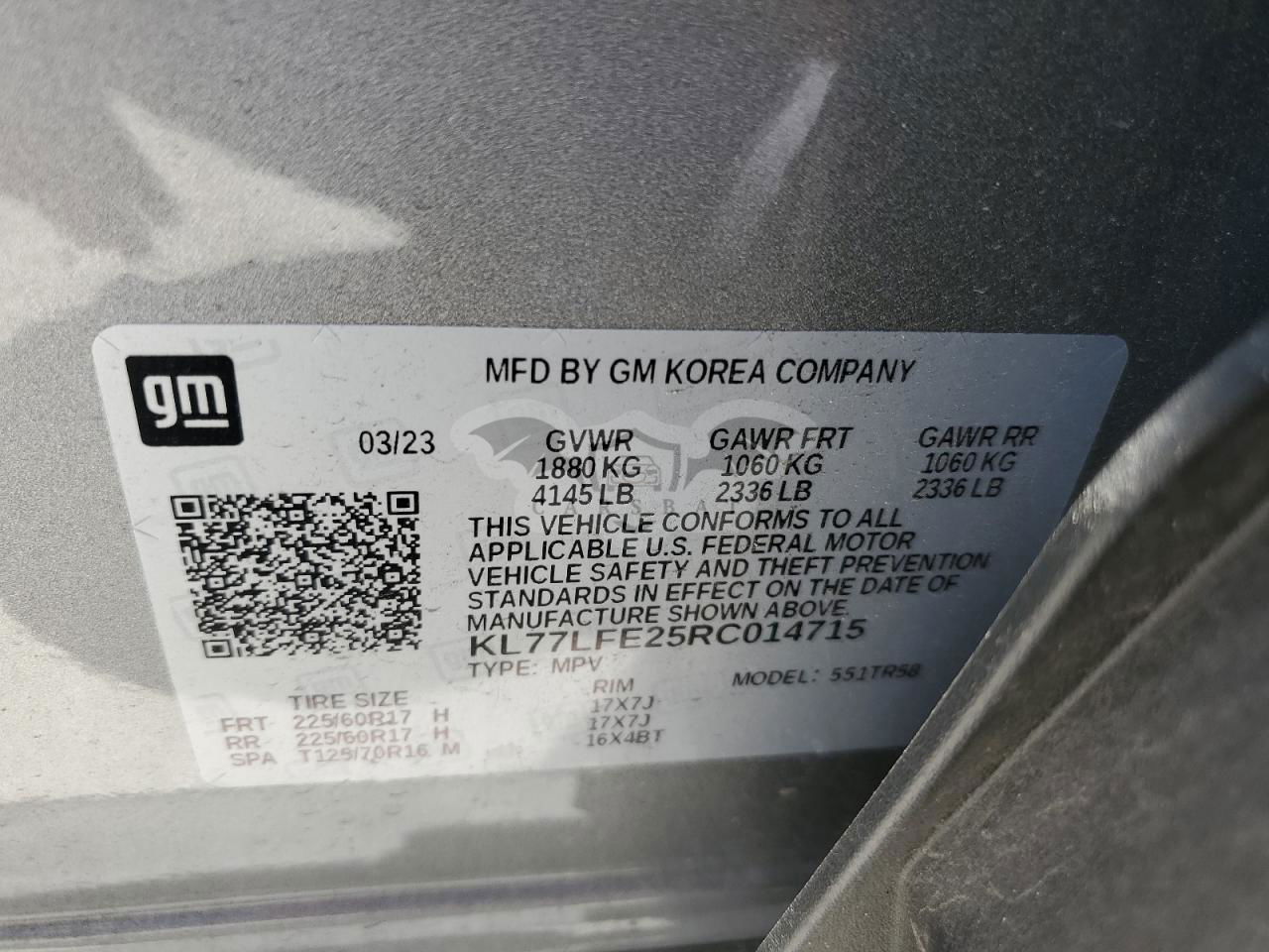 • VIN: KL77LFE25RC014715