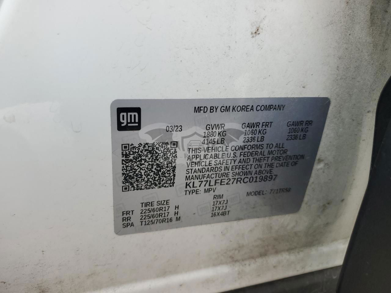 • VIN: KL77LFE27RC019897