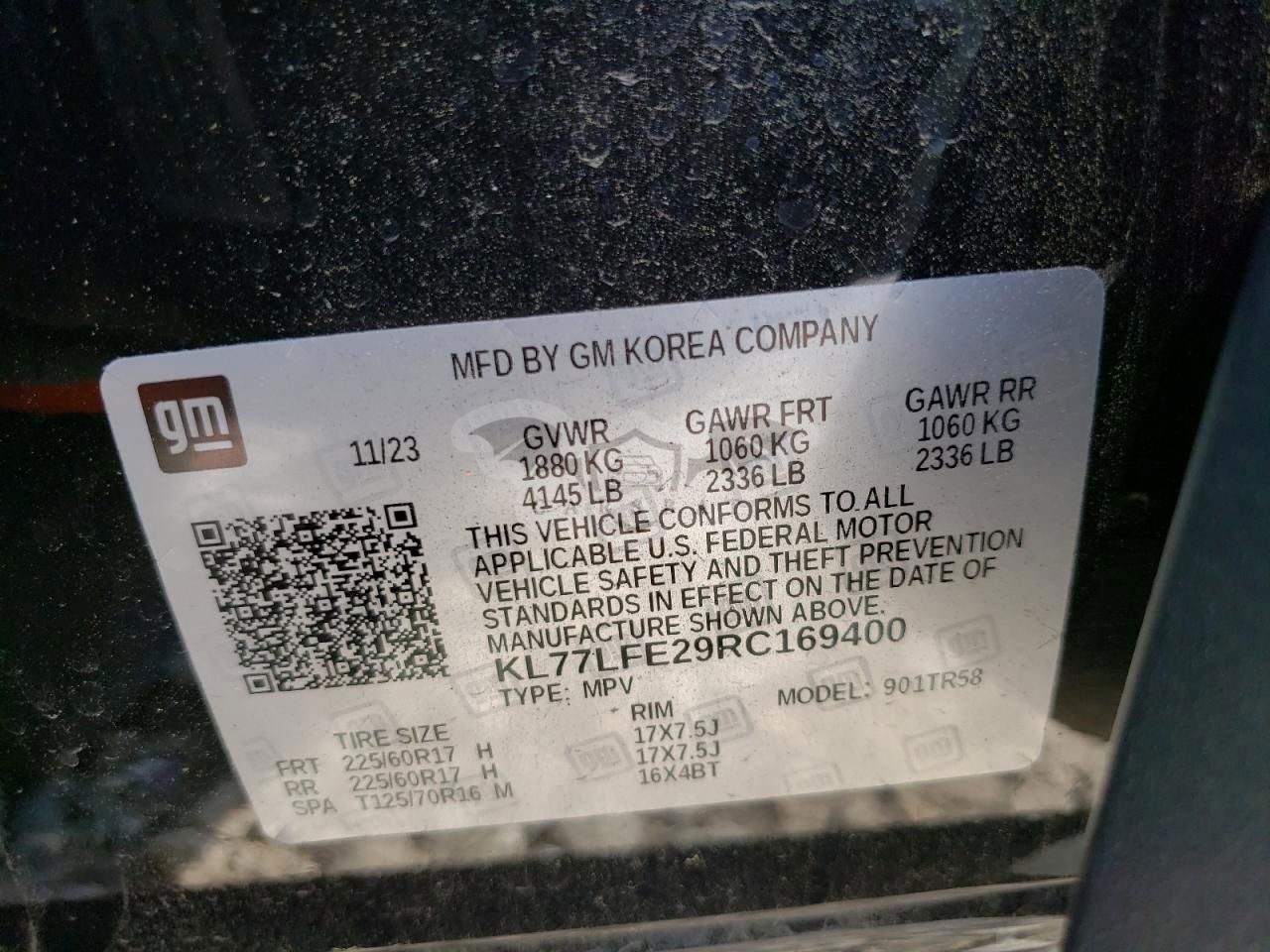 • VIN: KL77LFE29RC169400